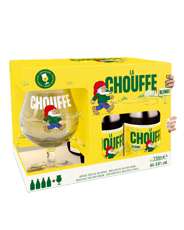 Bij Toba Specialiteiten houden we van bieren die sfeer en gezelligheid brengen, en niemand doet dat beter dan La Chouffe. Deze bulkverpakking 4 × (4 × 33cl) bevat vier complete cadeauverpakkingen, elk met vier 33cl La Chouffe bieren en een origineel La Chouffe-glas — hét glas om het iconische goudgele bier met zijn frisse, lichtkruidige karakter optimaal te laten stralen.
